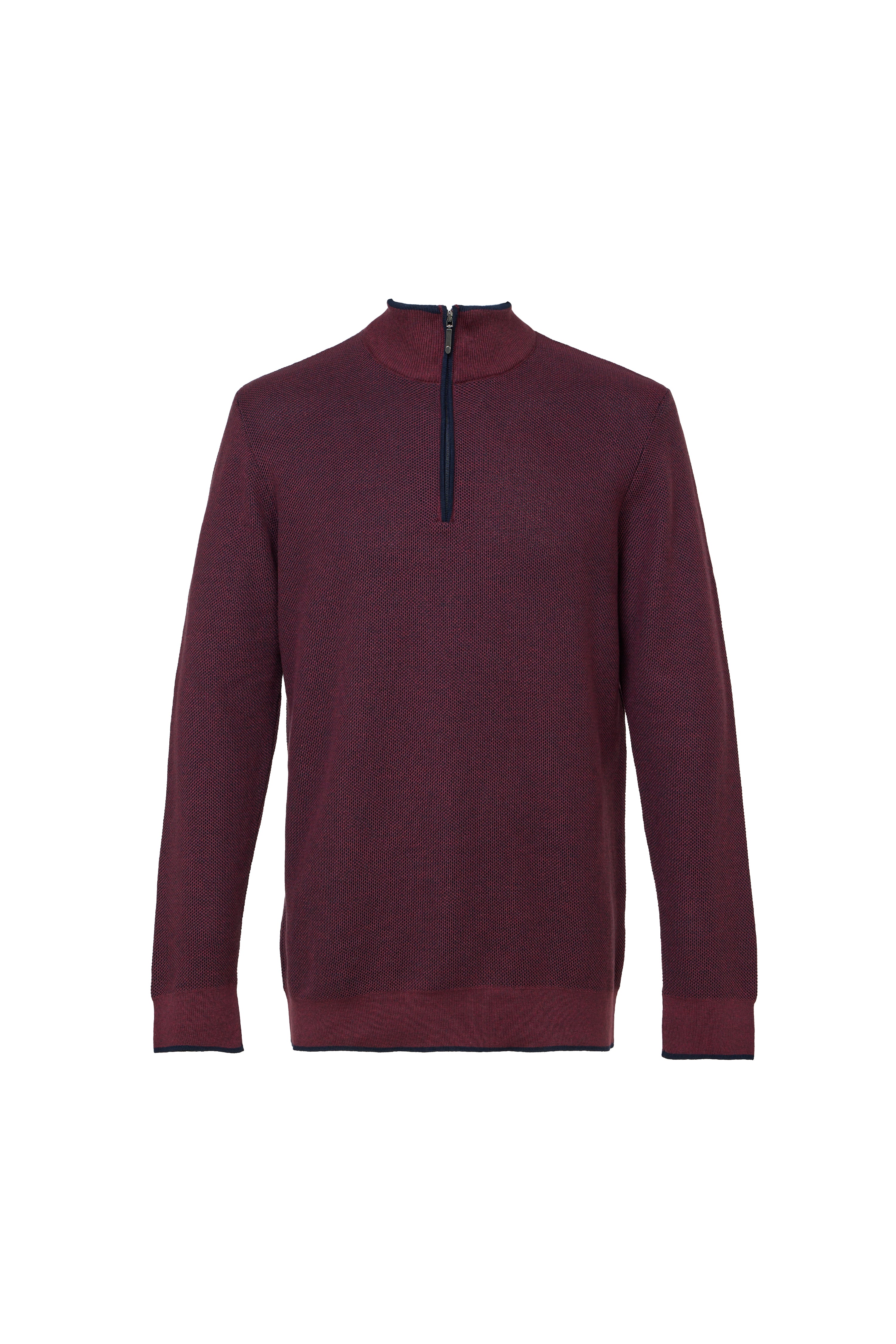 Bordeaux Two-Tone Waffle Quarter-Zip Sweater