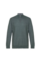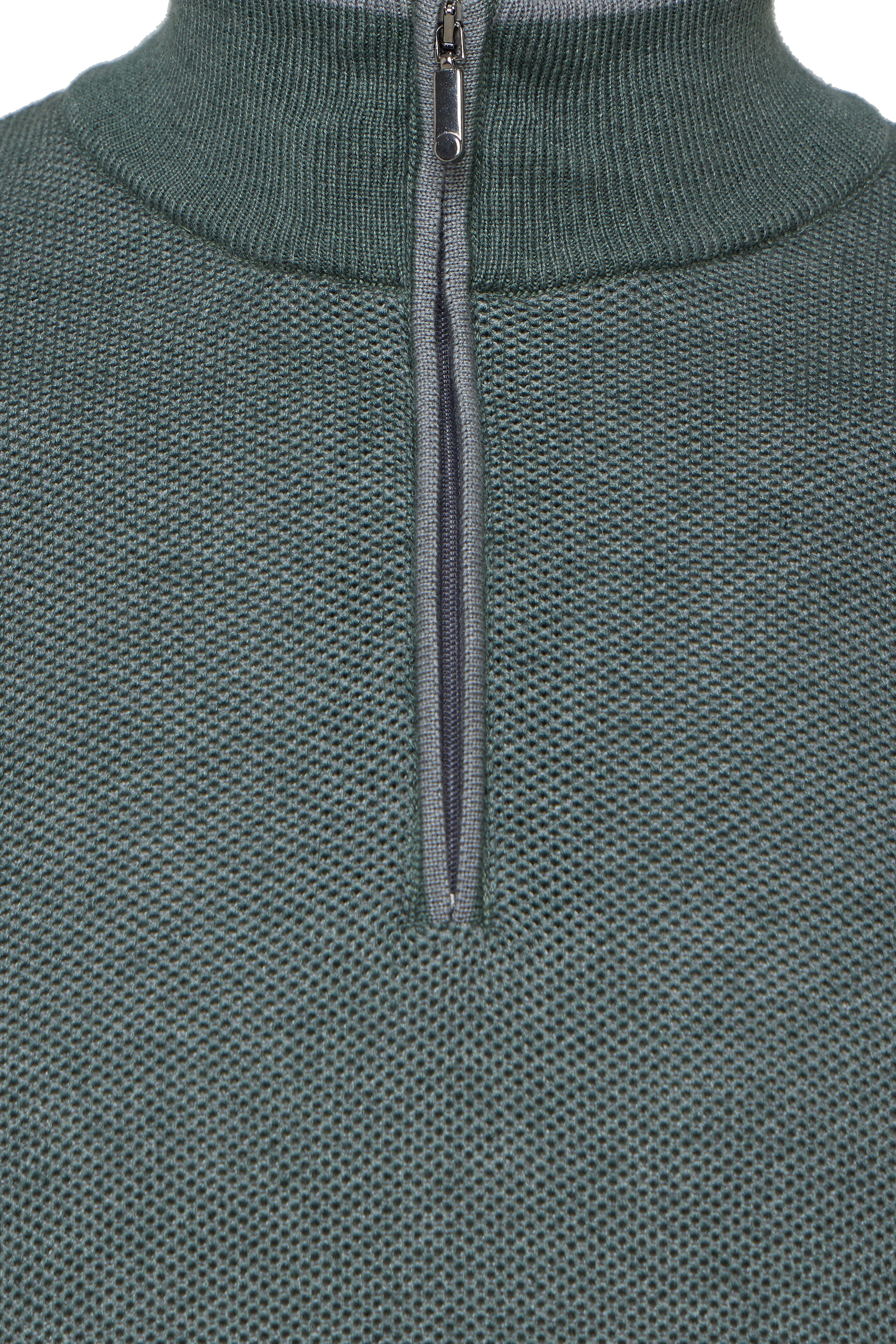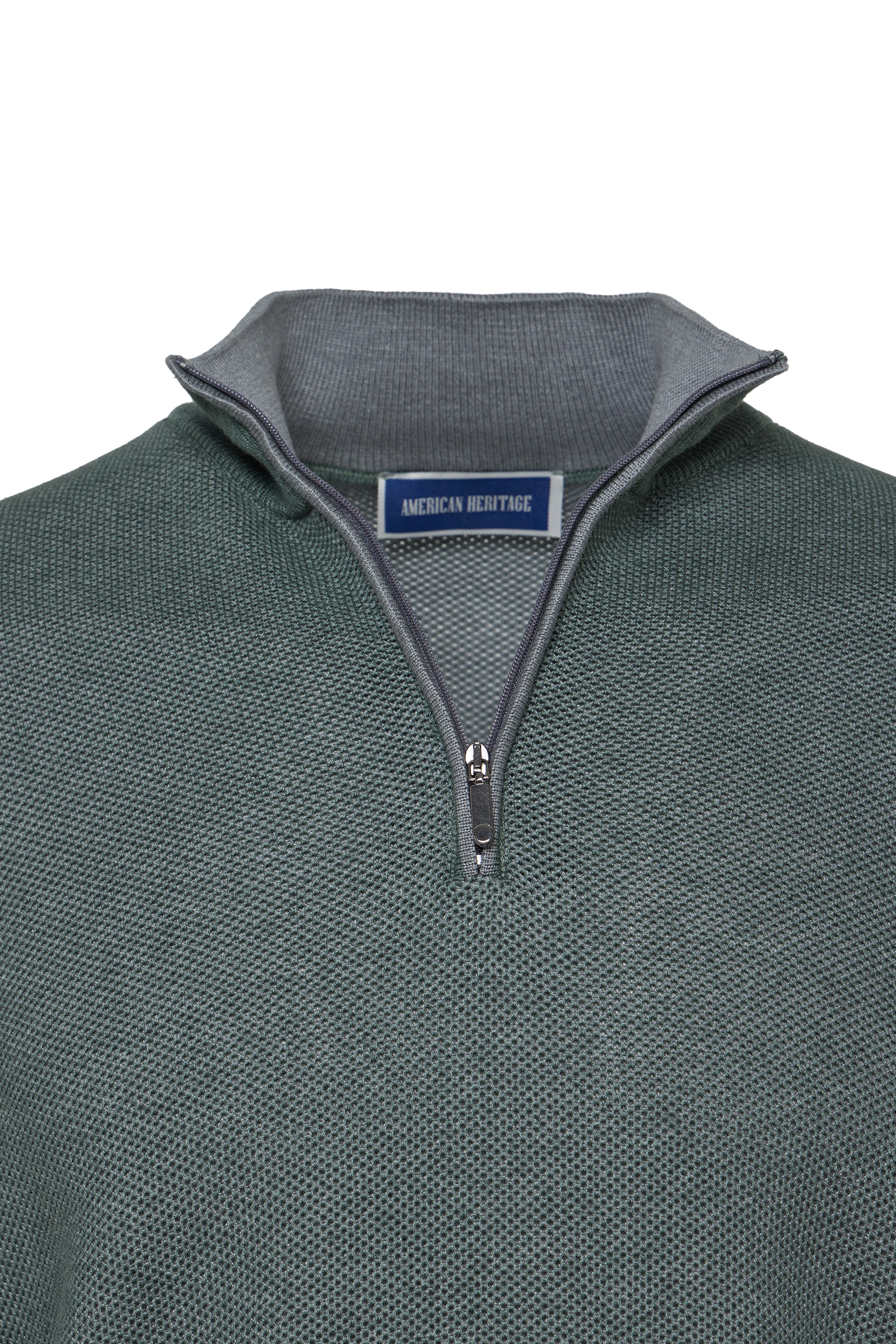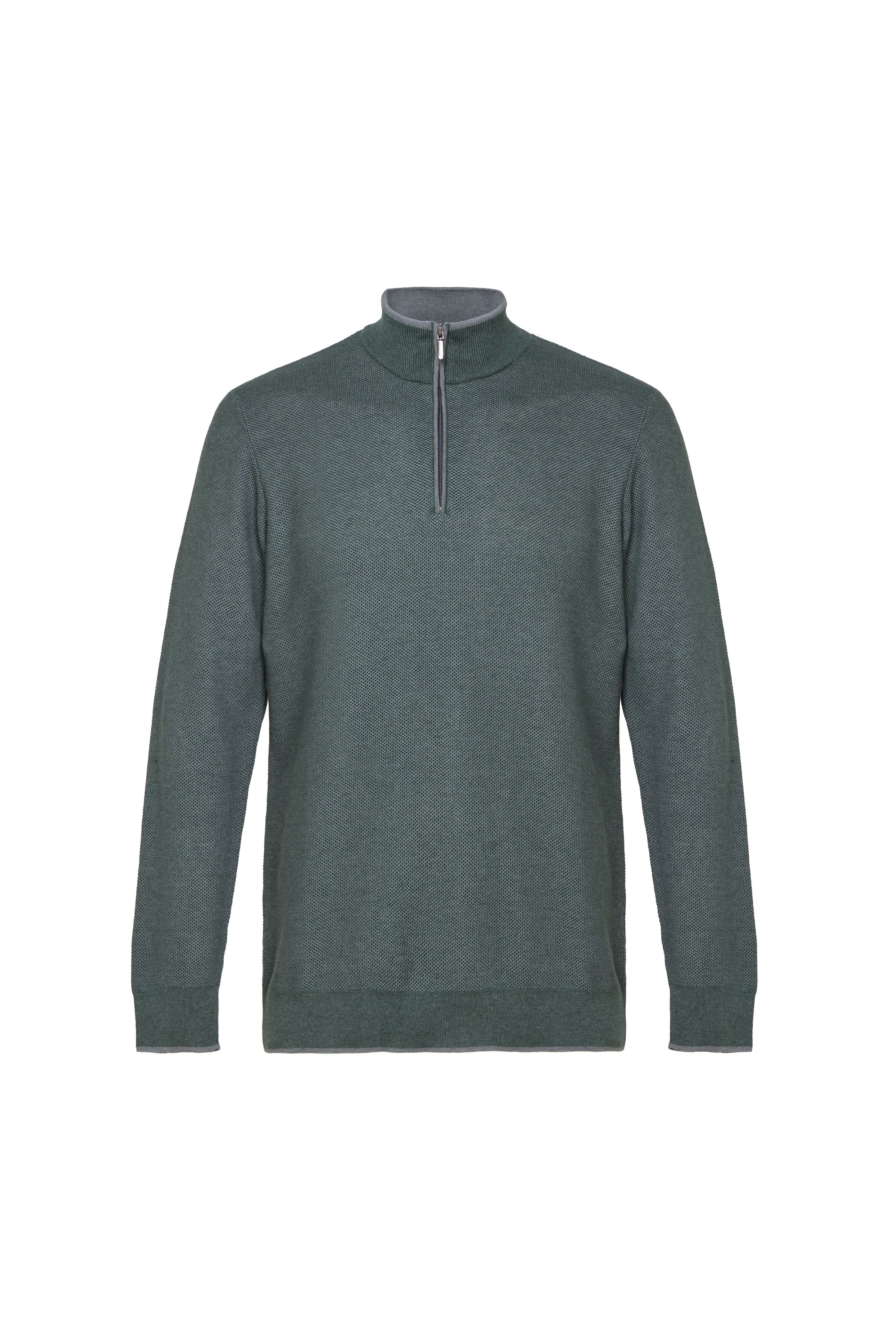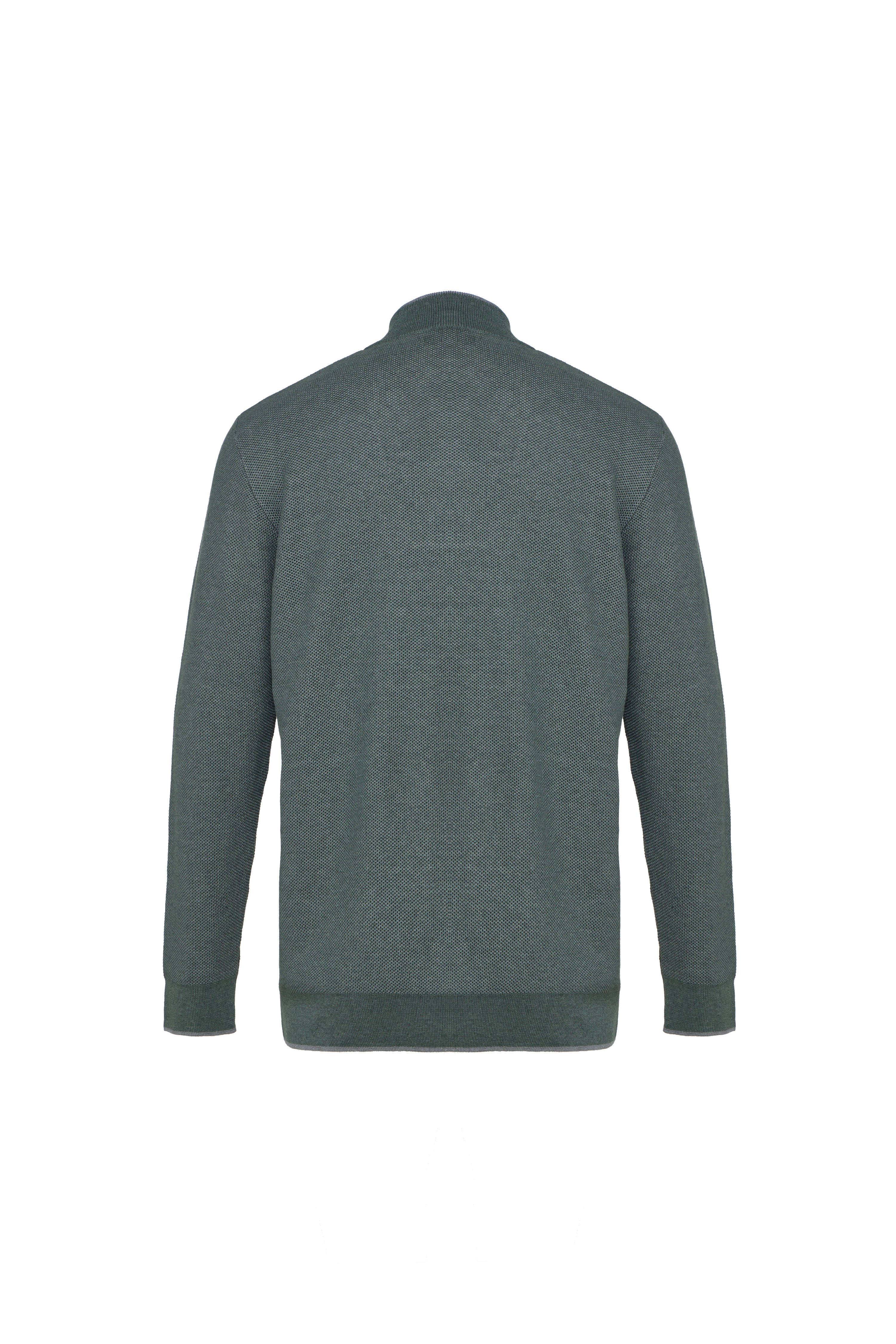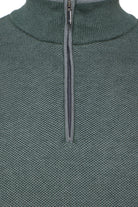 Green Two-Tone Waffle Quarter-Zip Sweater
