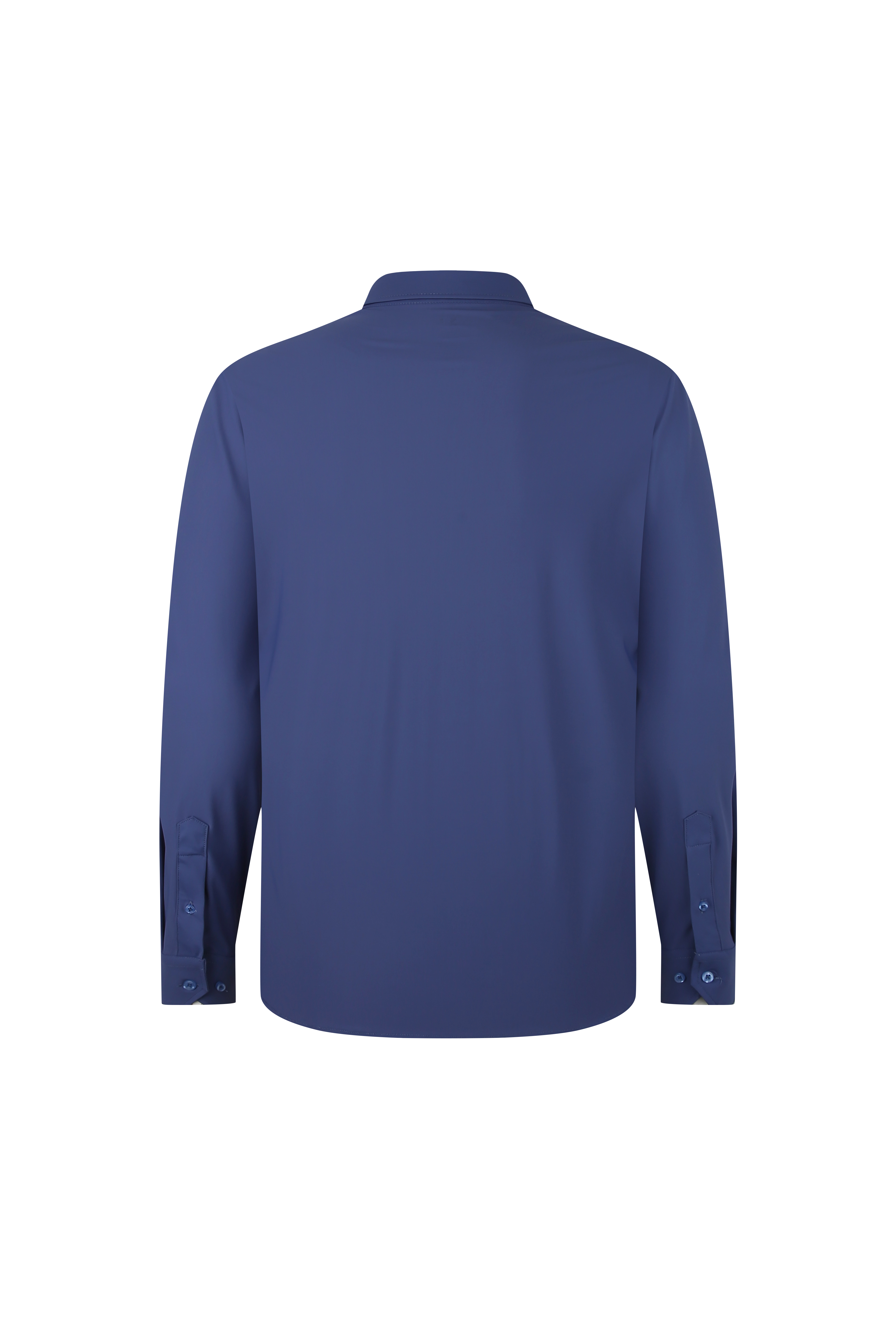 Step into timeless Americana with the Navy Solid Performance Dress Shirt. Crafted from a premium blend of 75% nylon and 25% spandex, this long-sleeve shirt combines crisp sophistication with modern performance technology. Built with 4-way stretch for all-day comfort, it features moisture-wicking, fast-drying, and wrinkle-free properties to keep you looking sharp. Anti-microbial and SPF 50 protection add practicality, while the non-iron and easy-care finish make it perfect for both workdays and weekends. A versatile essential that pairs effortlessly with jeans or slacks—classic American style, elevated for today.