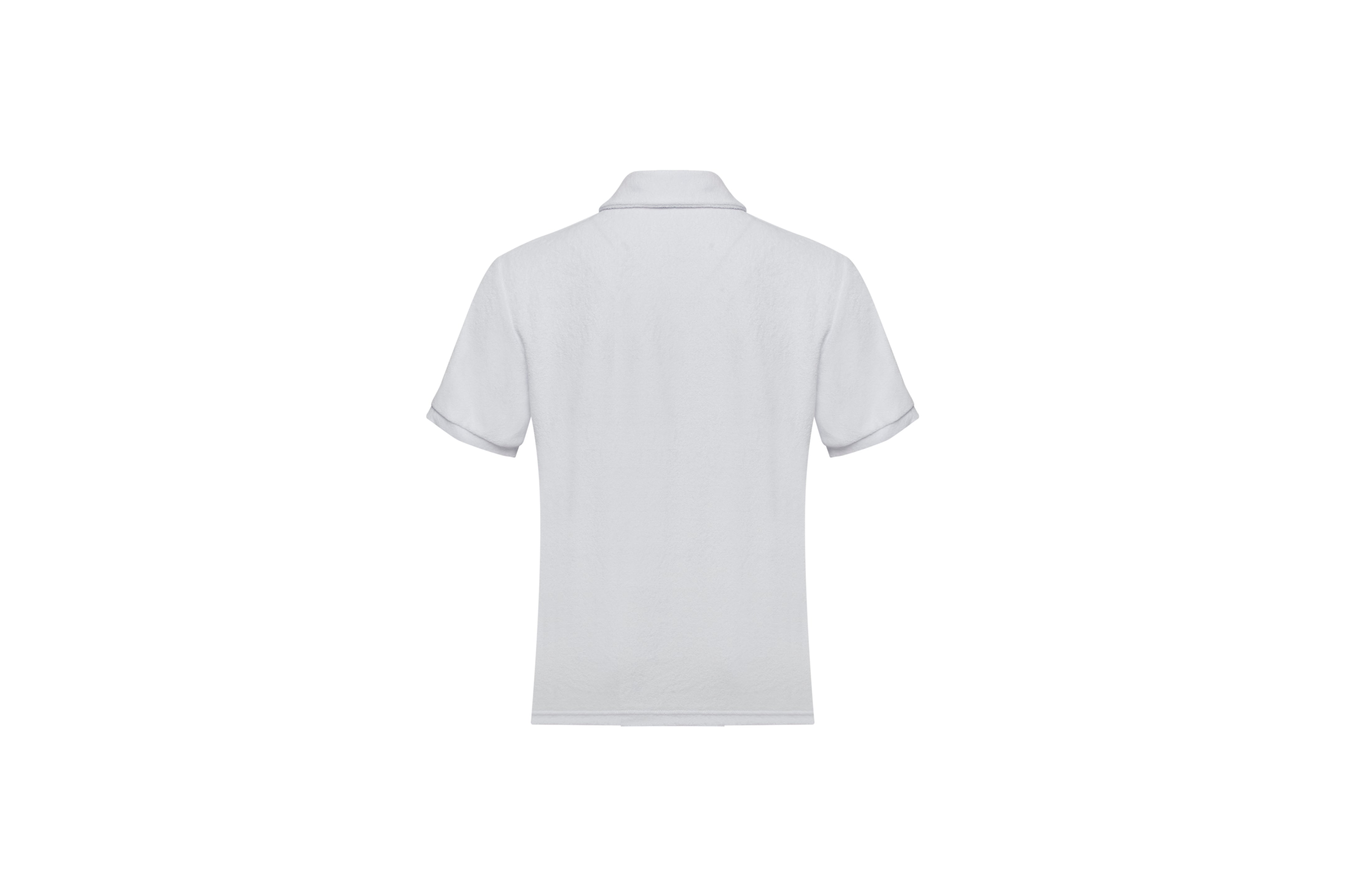 French Terry Two-Button Polo in white with contrasting piping in the inner collar and side slits.