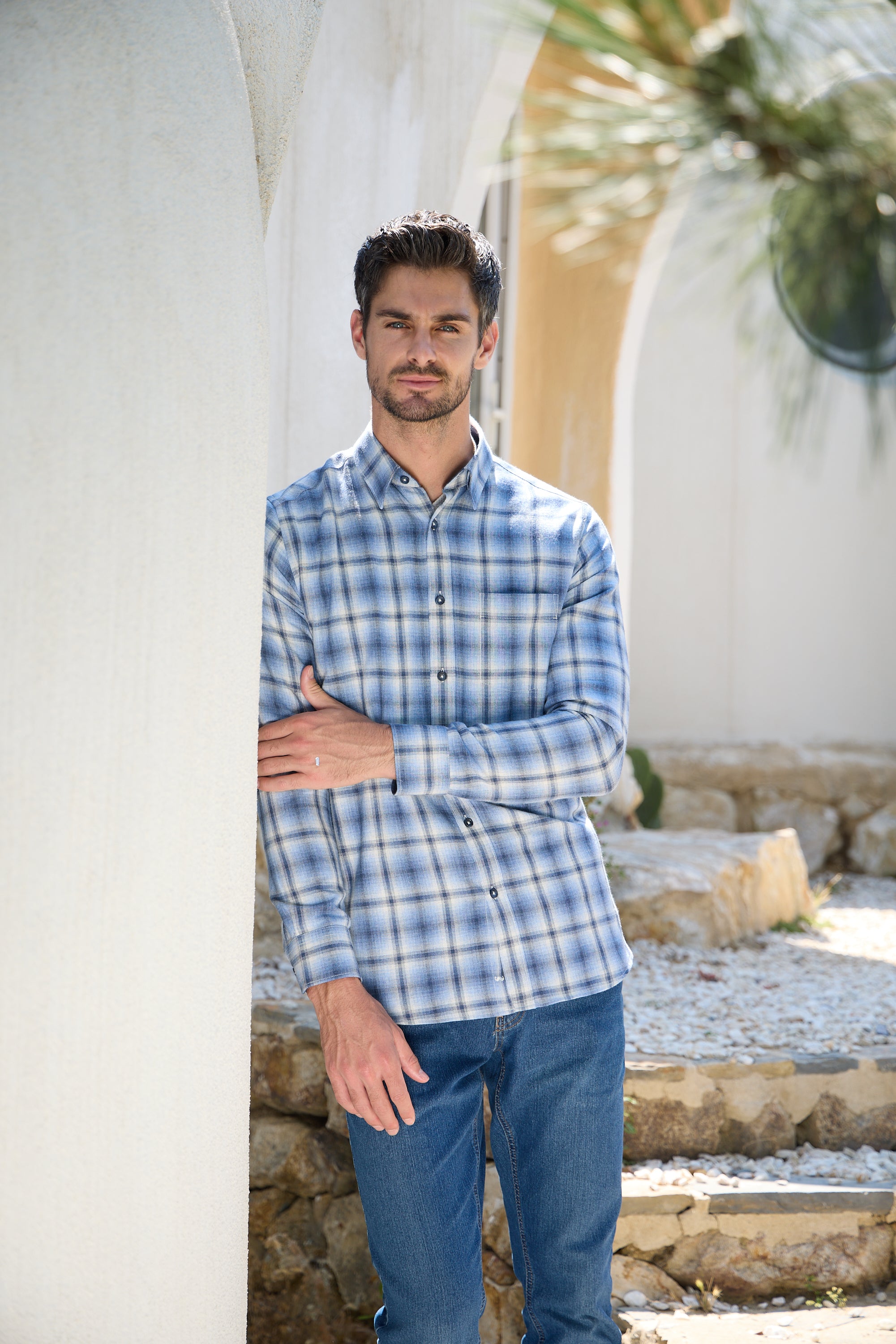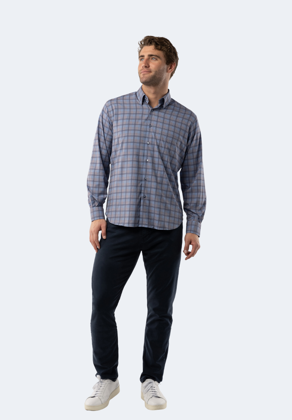 The Multi Grey and Blue Plaid Shirt is crafted with American Heritage style and has a chest pocket for utility. It also has performance stretch and antimicrobial technology for odor and moisture control, delivering a fresh and comfortable experience.