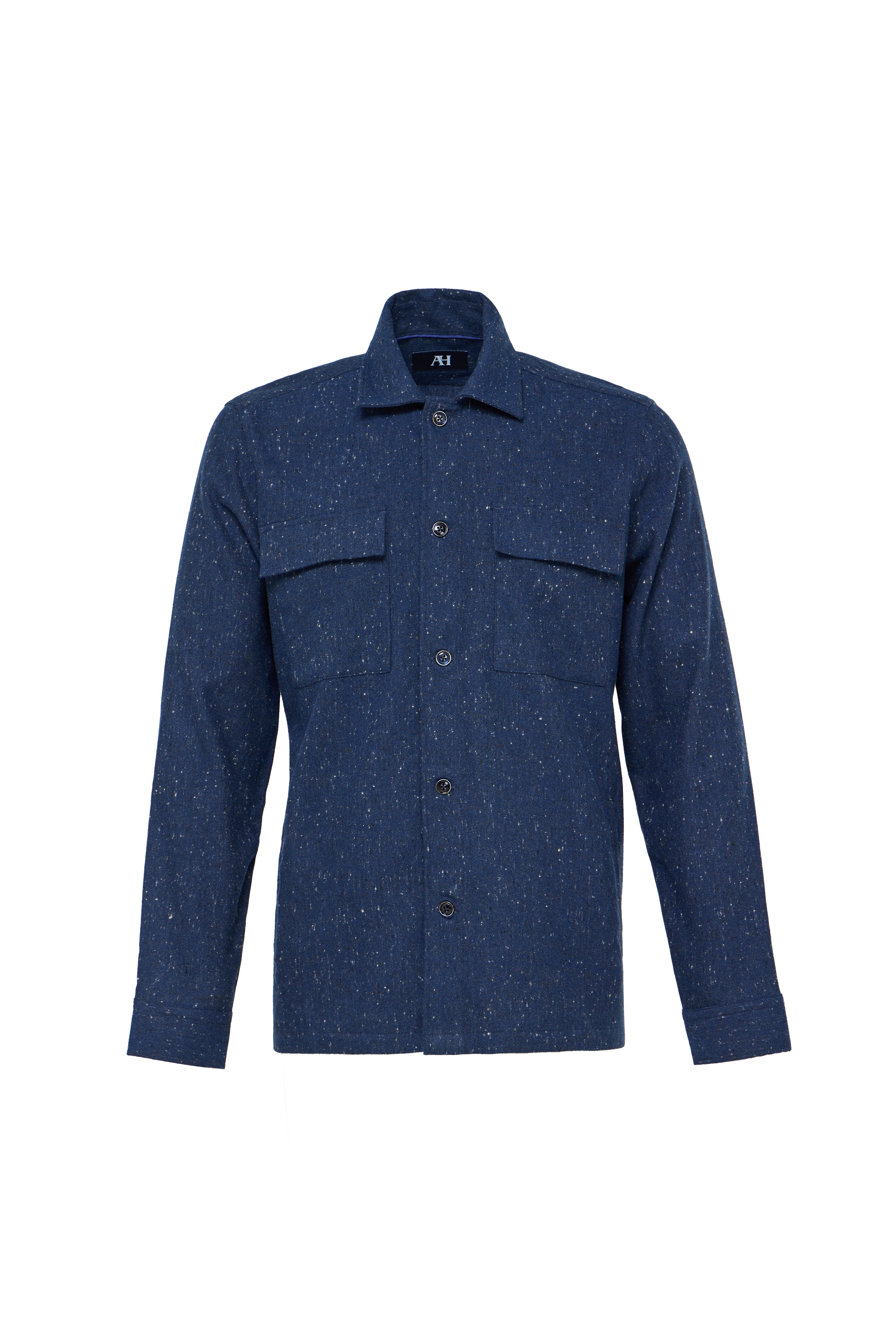 Bring rugged Americana spirit into cooler days with our Indigo Pin Dot Utility Shirt Jacket. Designed with two front flap pockets for utility and style, this versatile piece blends the structure of a jacket with the comfort of a shirt. Crafted from a durable stretch fabric mix of 55% recycled polyester, 18% wool, 13% viscose, 12% AF, and 2% elastane, it offers warmth, resilience, and ease of movement. The subtle pin dot texture adds depth, while the indigo tone keeps it classic. Perfect for layering through the fall season—this shirt jacket is a modern essential rooted in American tradition.