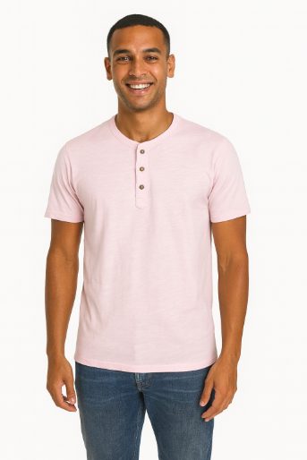 Introducing the Pink T-Shirt, crafted from a lightweight cotton blend with short sleeves and a stylish 3-button Henley design. This breathable shirt will keep you cool and comfortable no matter where your day takes you.