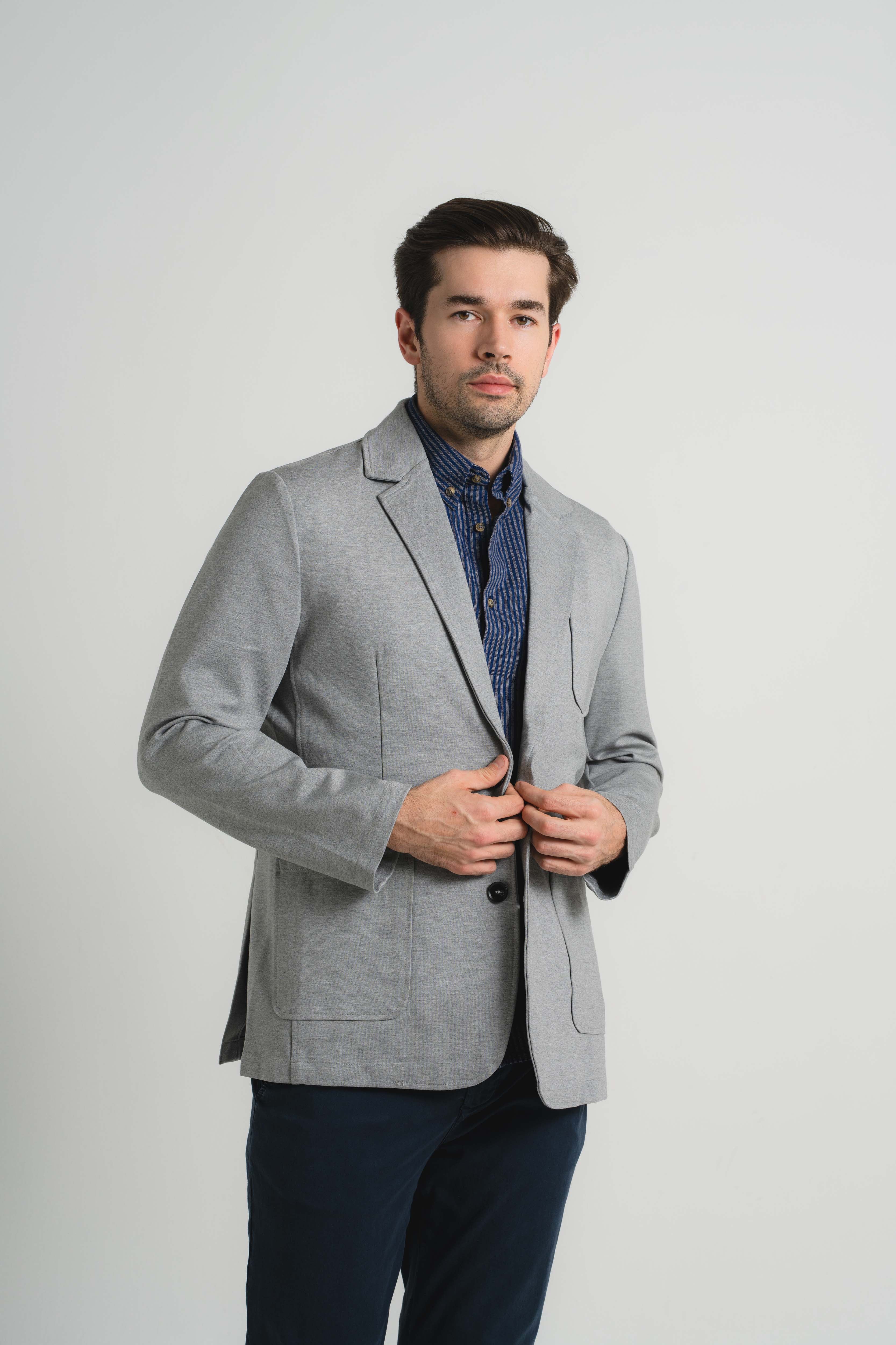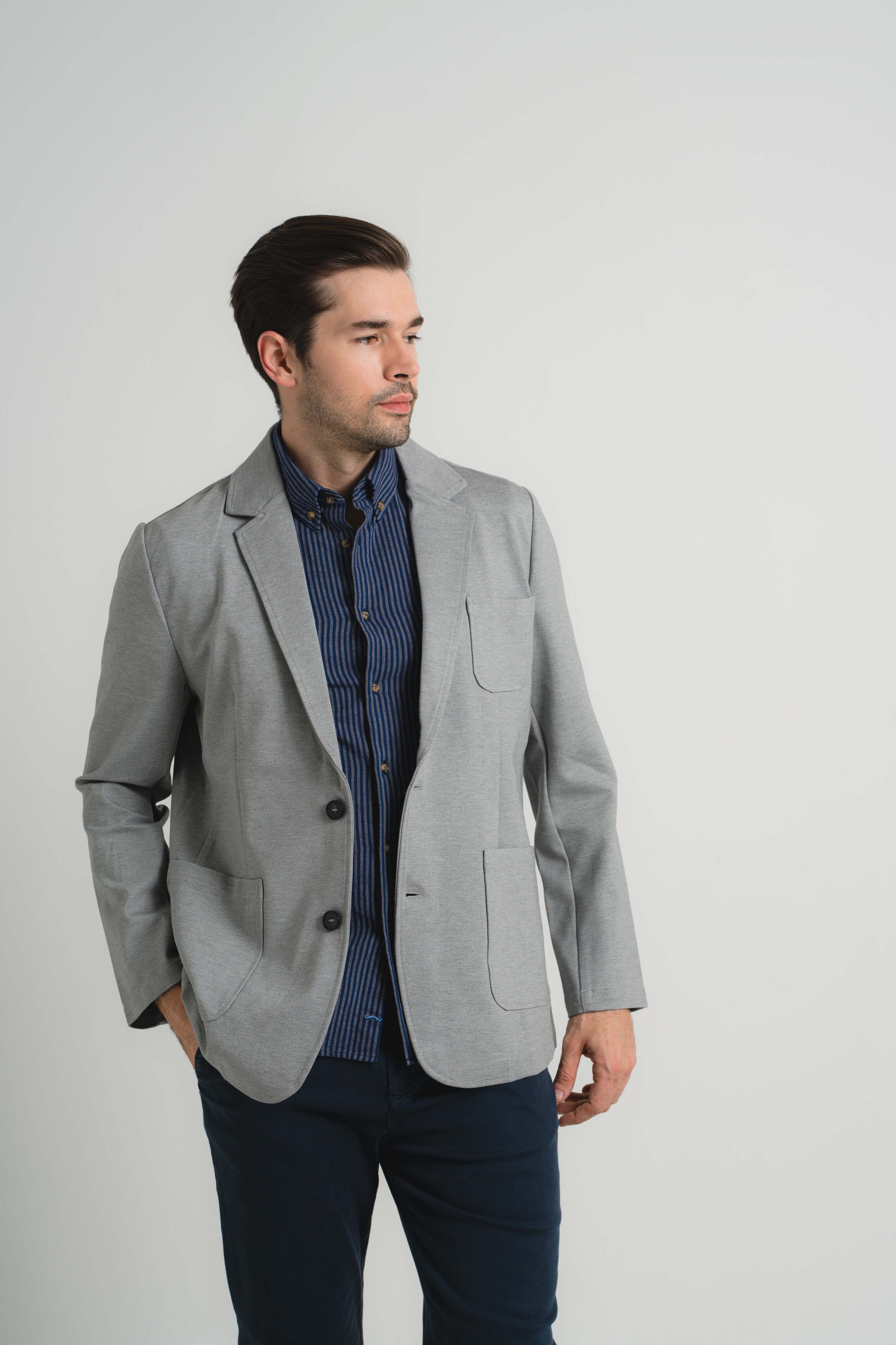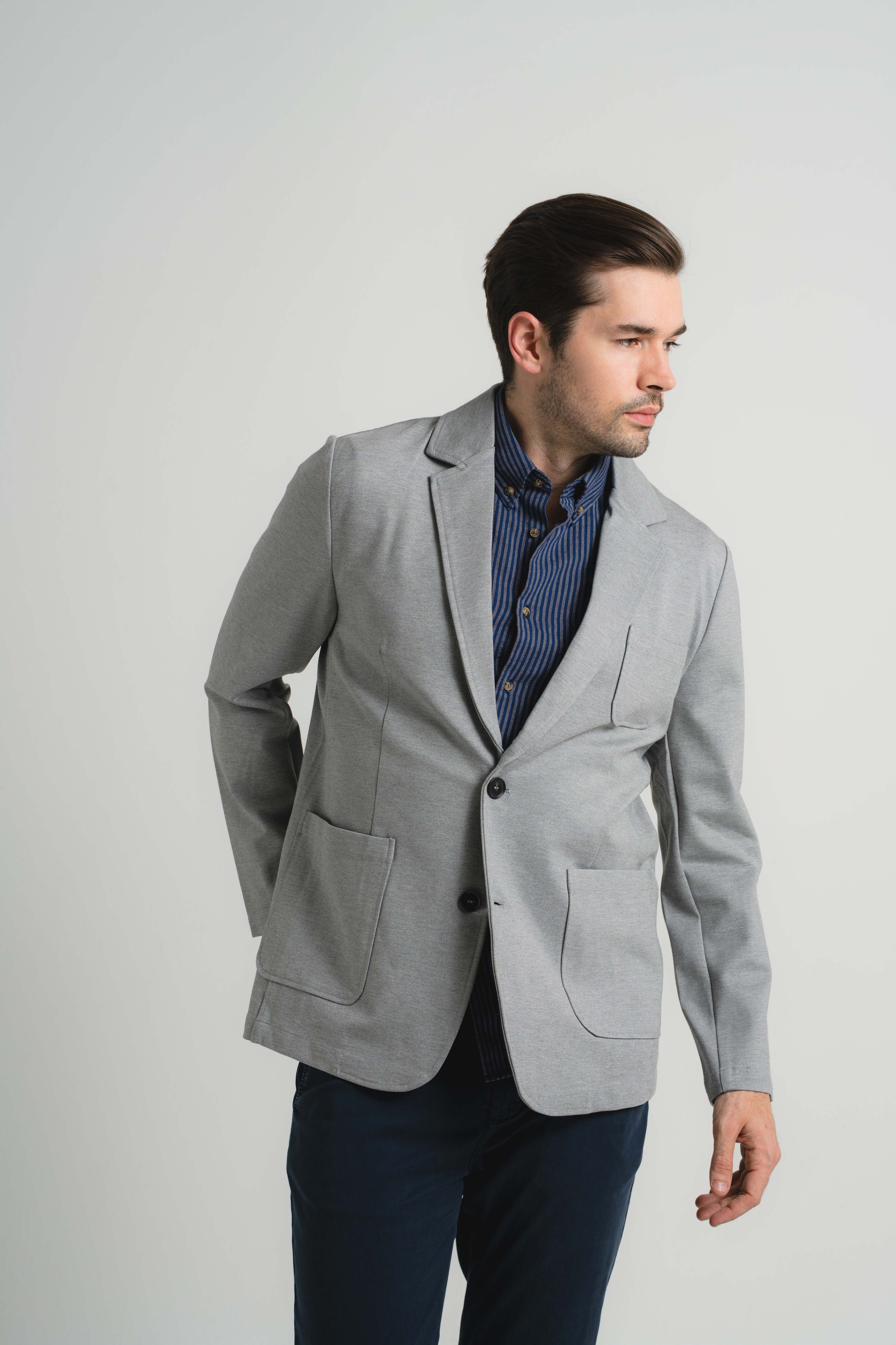 Performance Stretch unconstructed stretch two-button casual blazer.