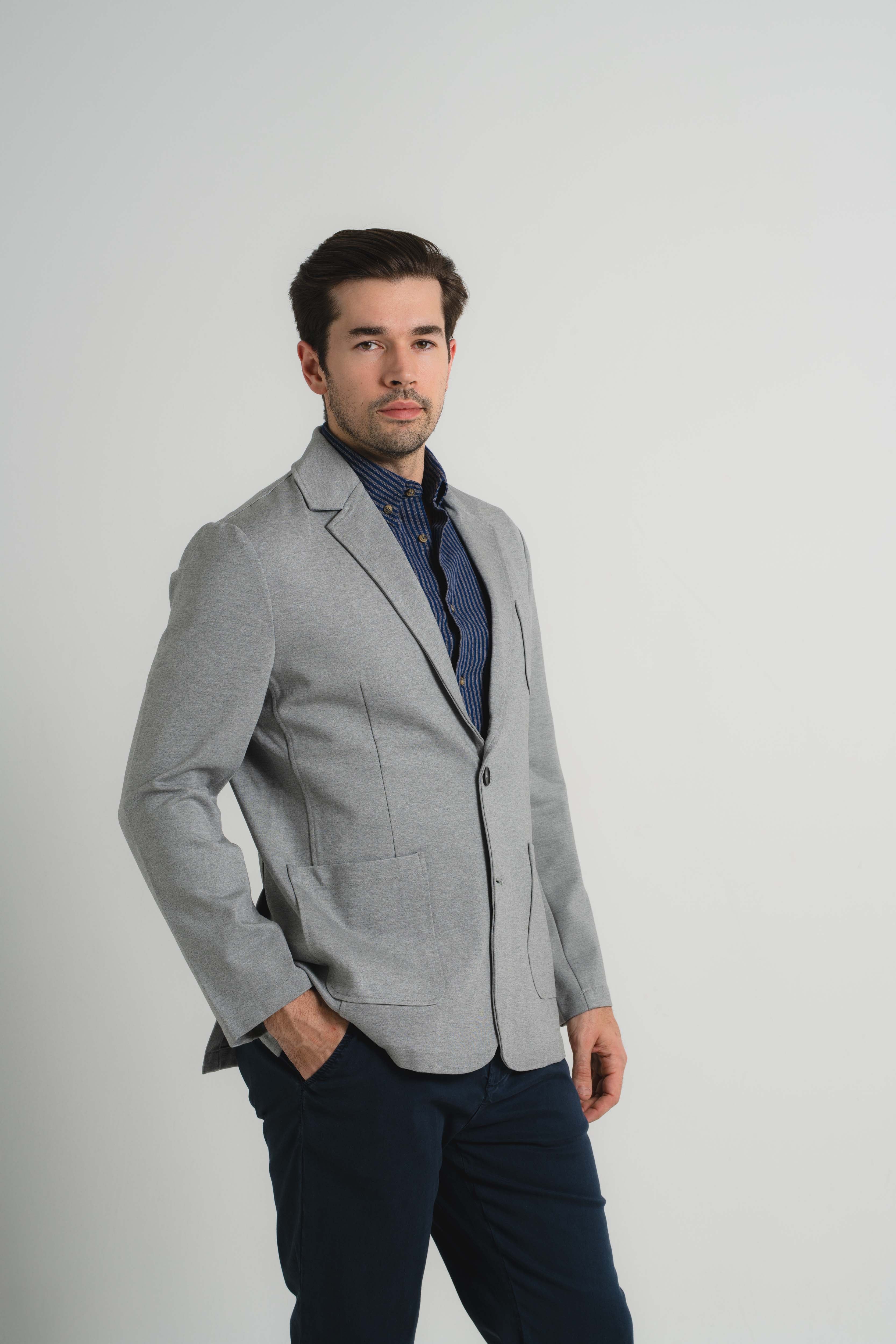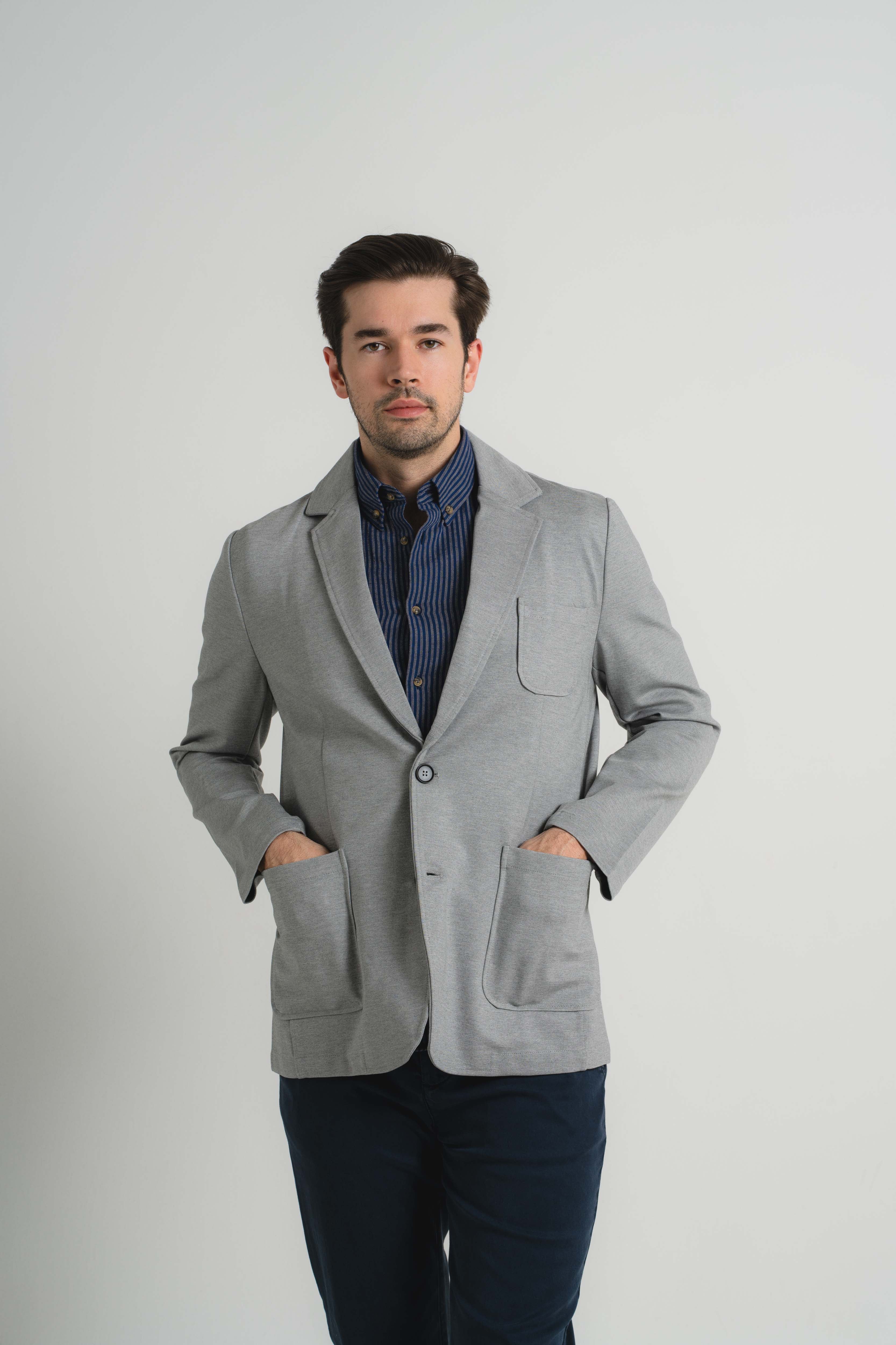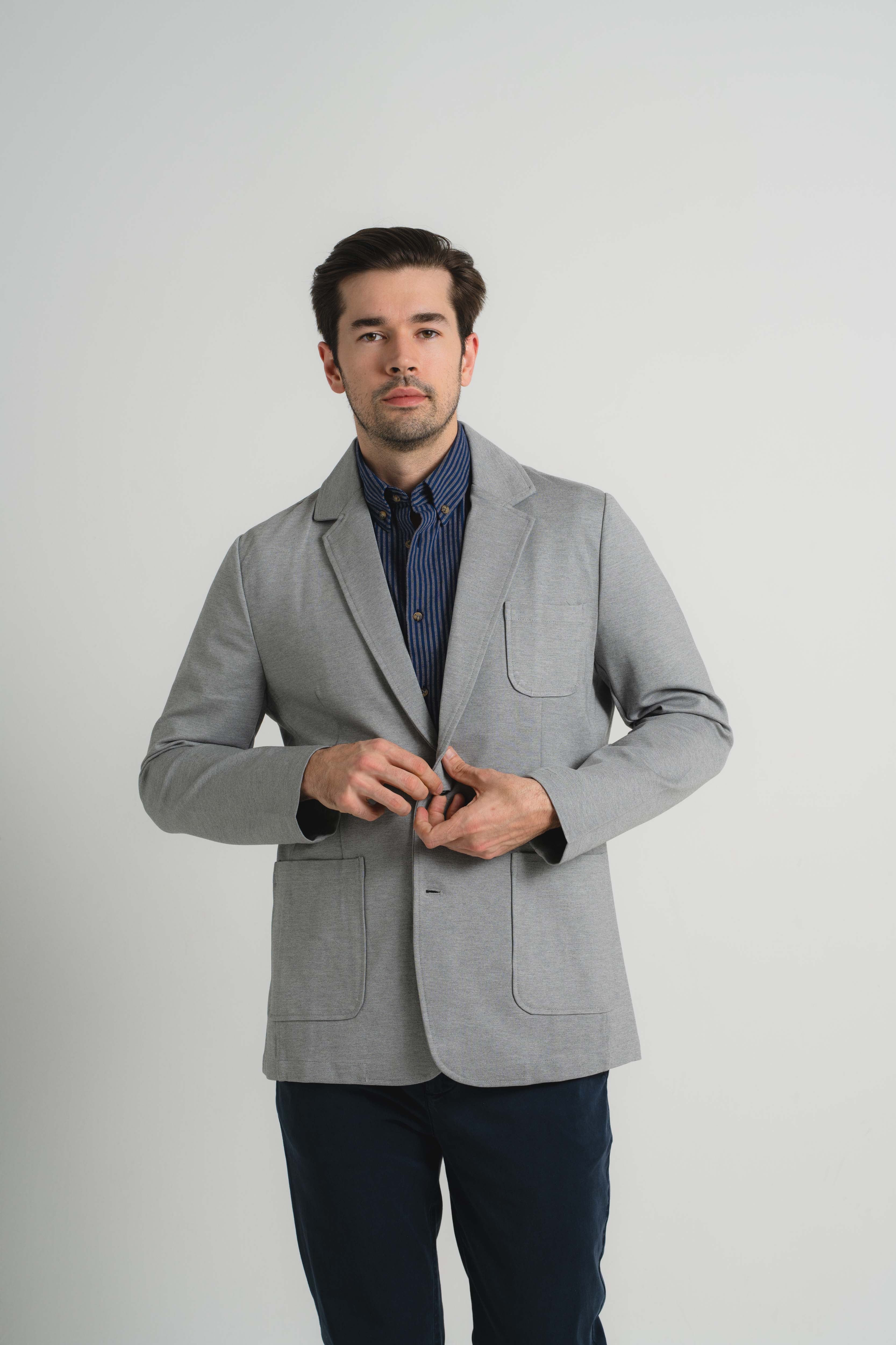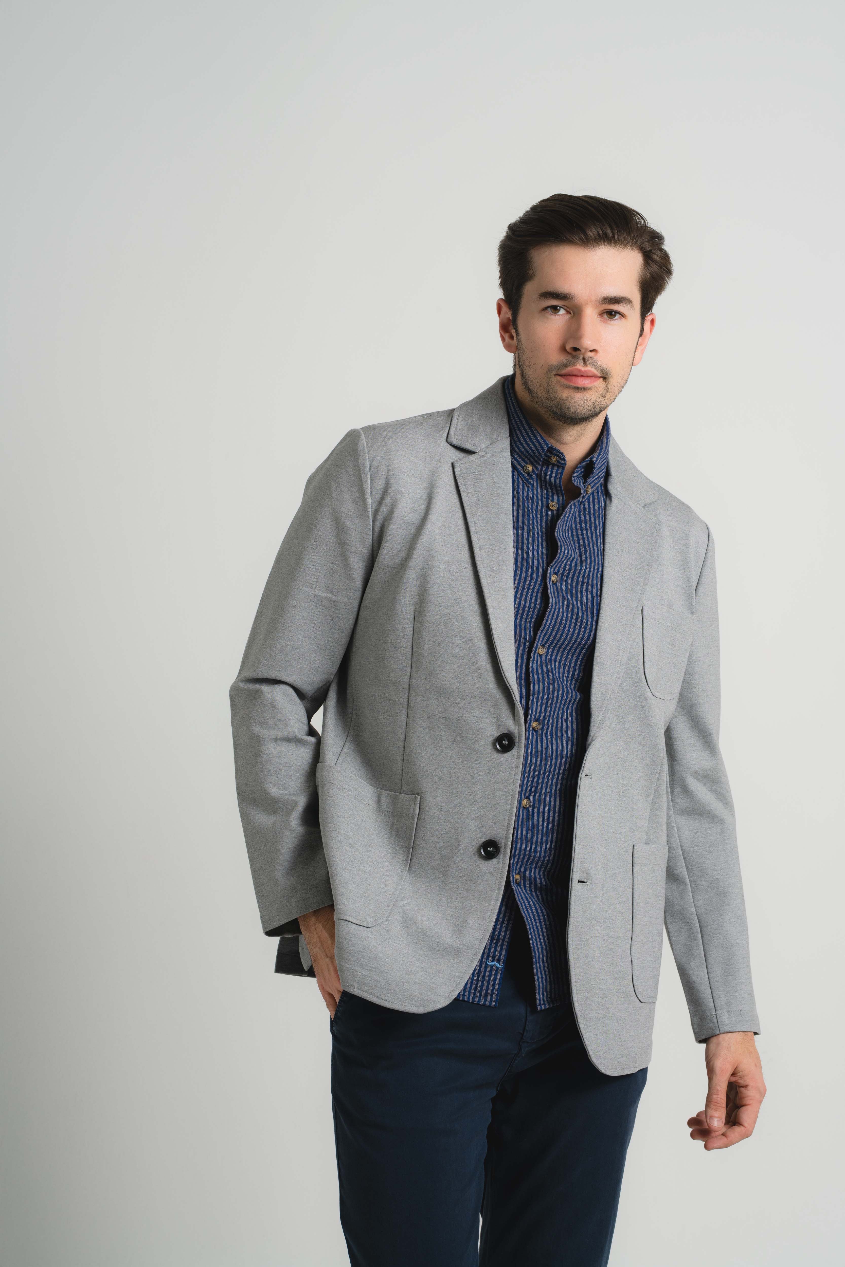 Performance Stretch unconstructed stretch two-button casual blazer.
