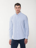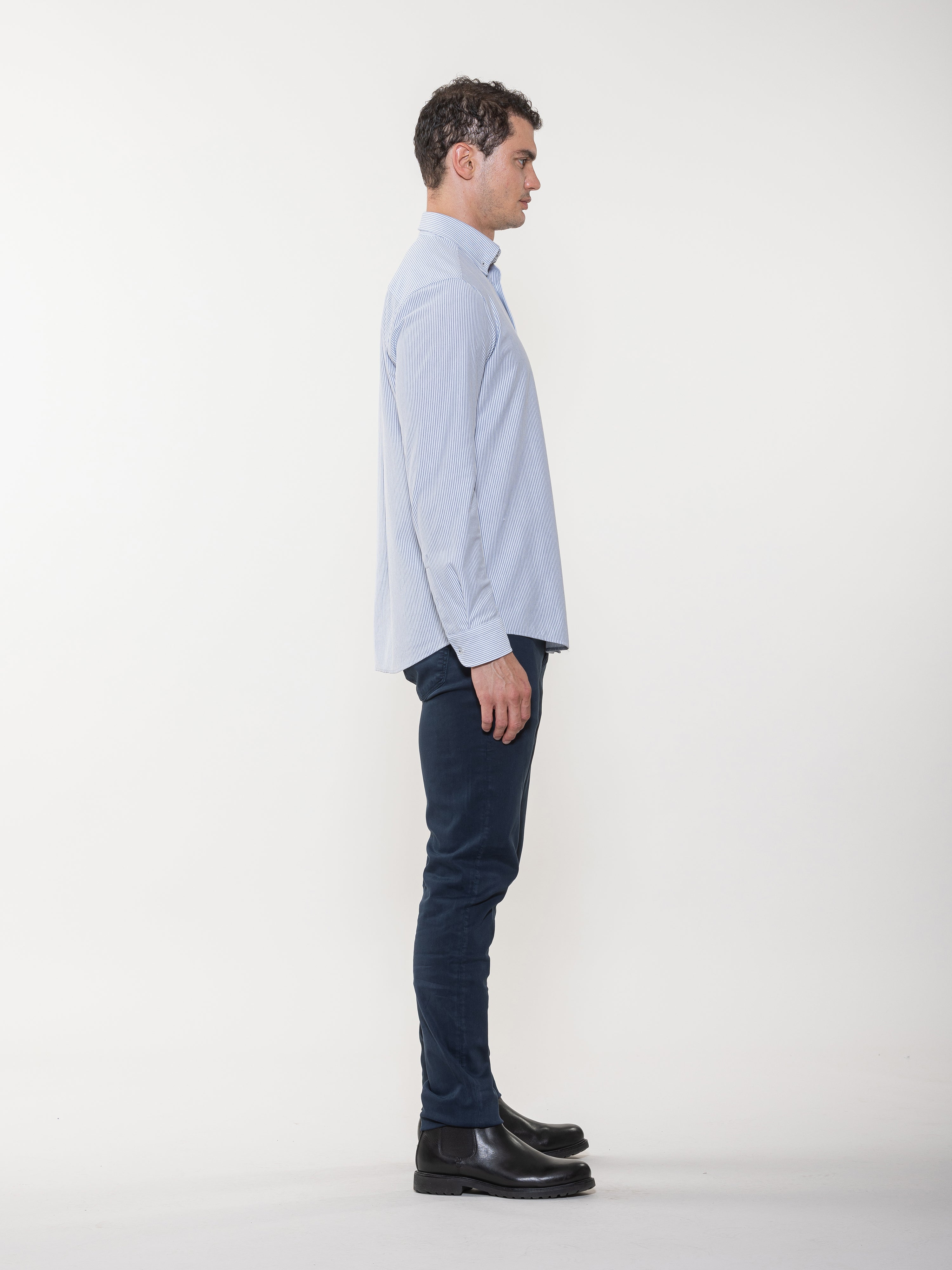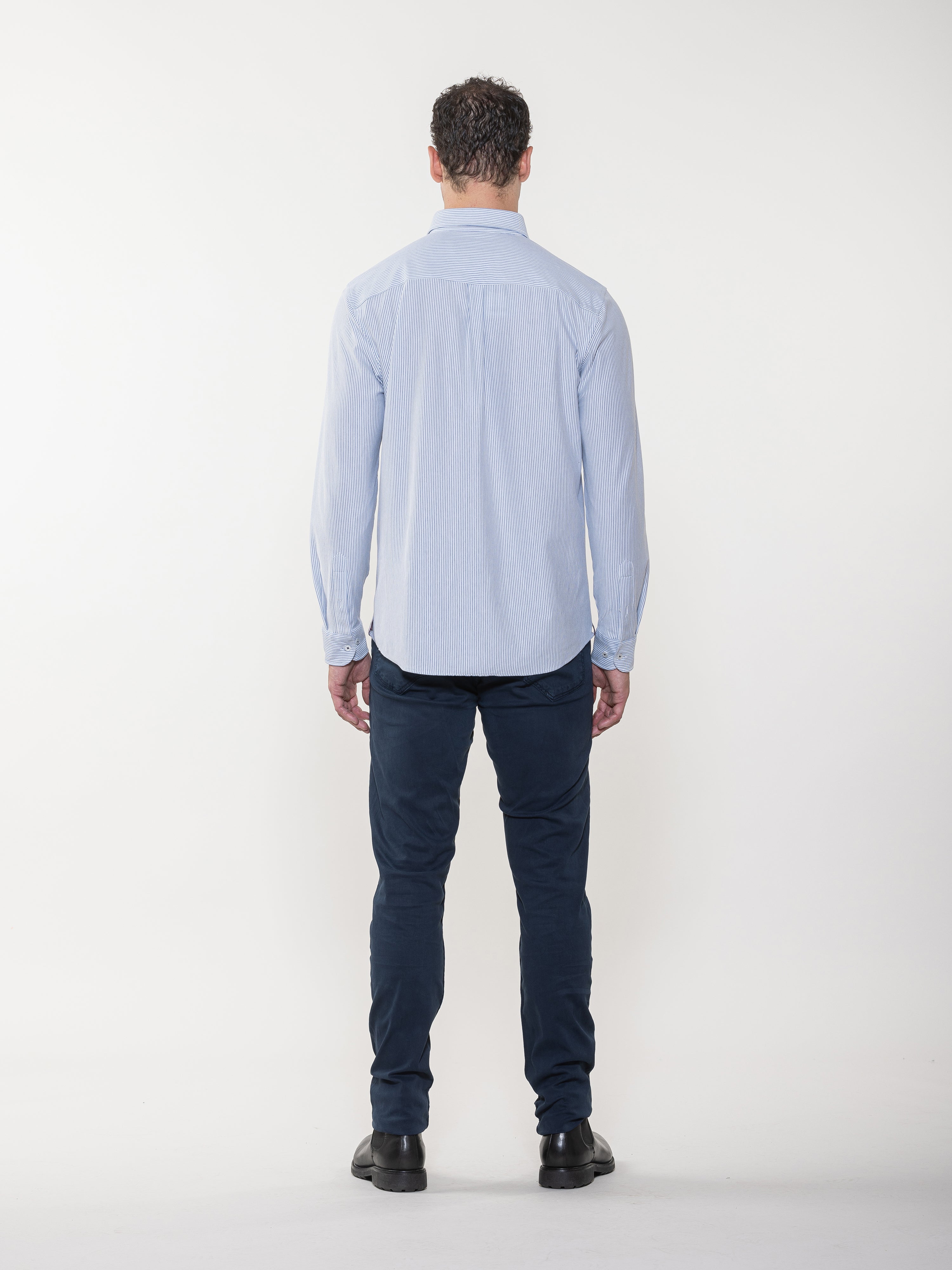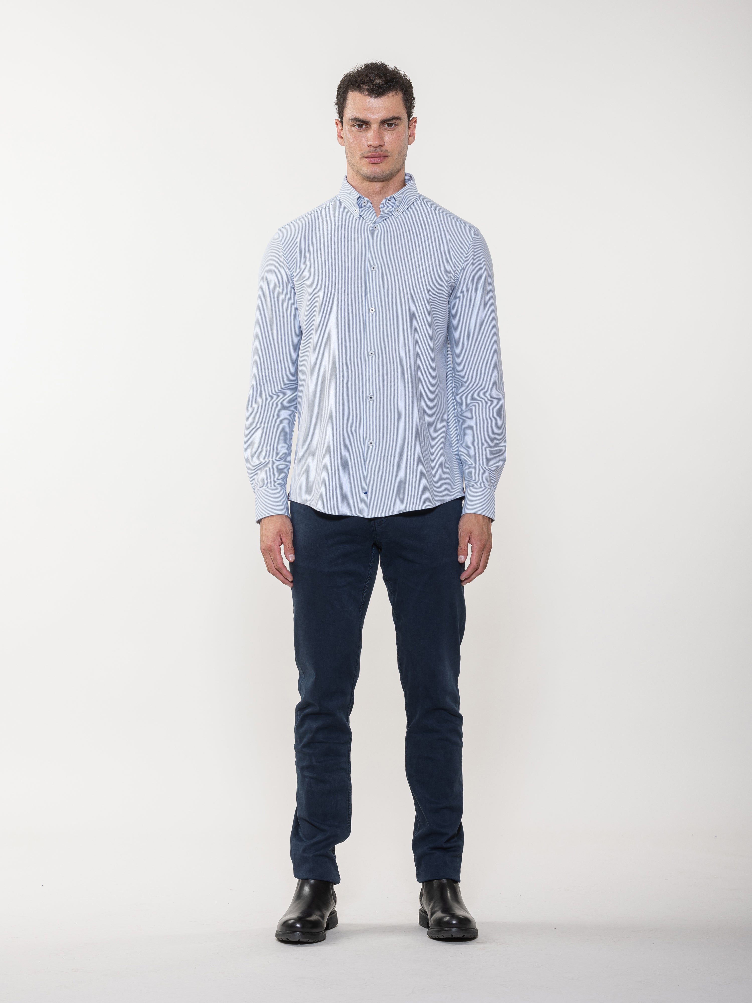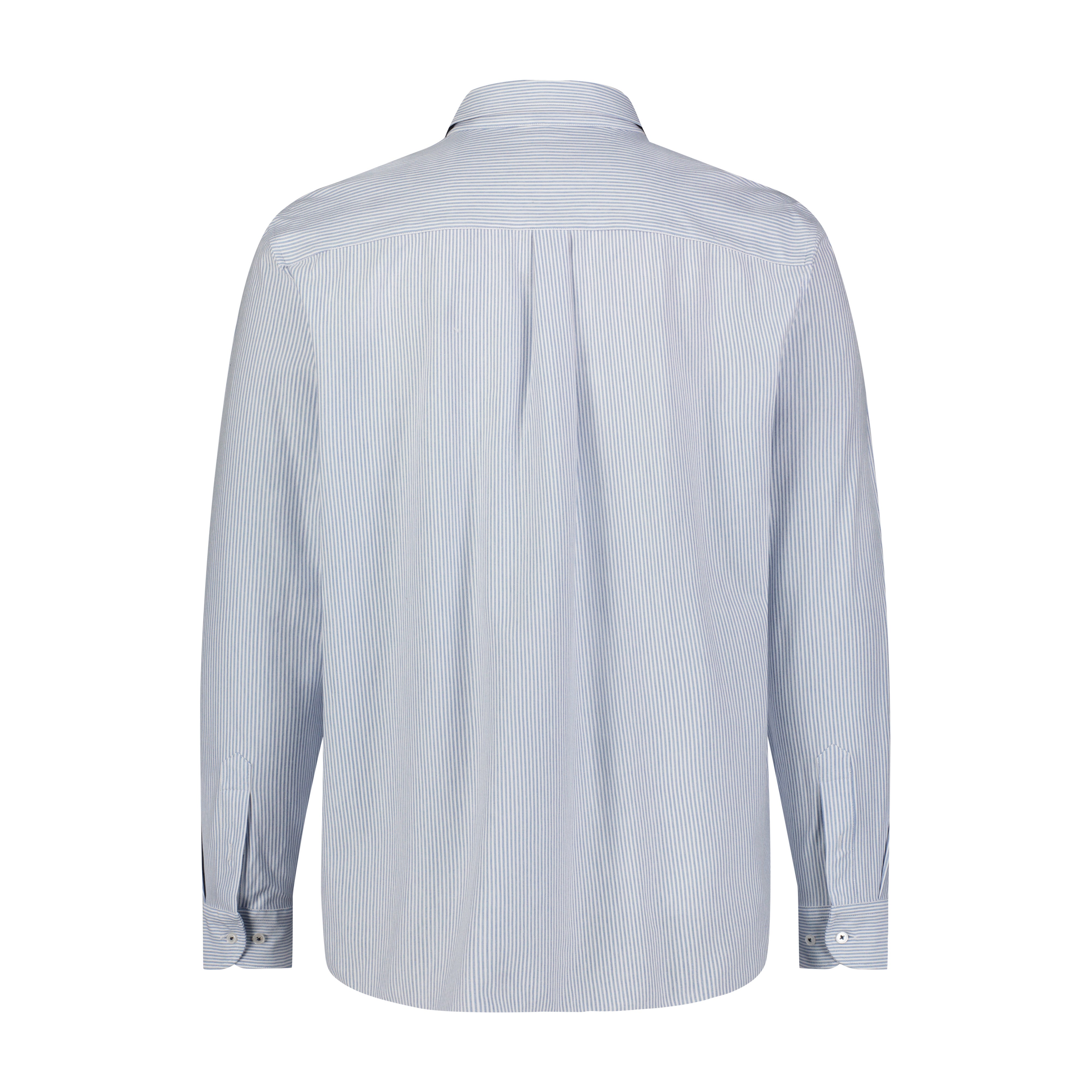 Stripe four way stretch fast dry, moisture-wicking, wrinkle-free, easy care long sleeve knit performance shirt.