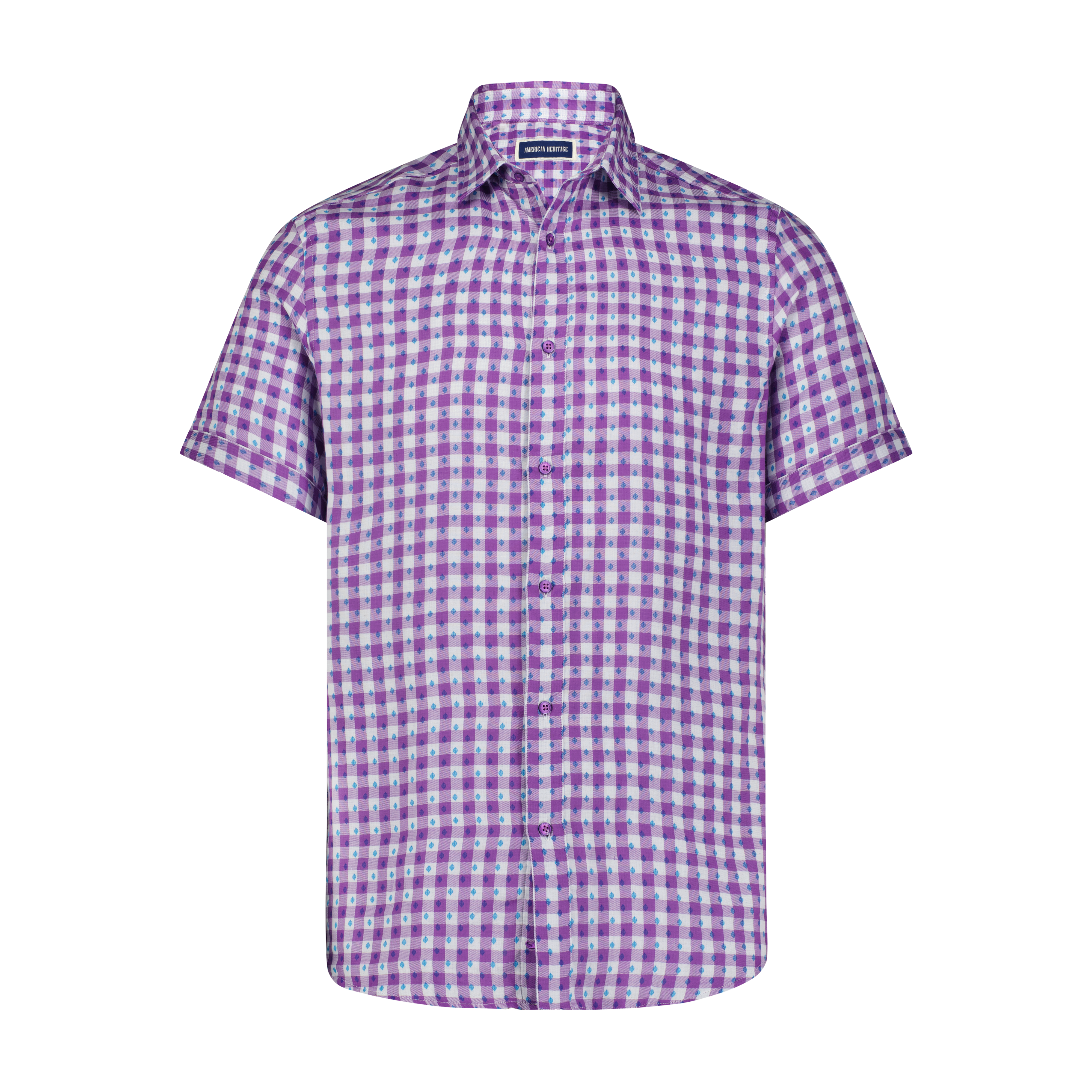 The Purple Check Short Sleeve Shirt is a classic American Heritage piece crafted from a double faced fabric for extra softness and comfort. This stylish shirt features a detail in the inner collar and cuff and silicone washed and garment washed finish for maximum durability. Get the perfect fit with this comfortable and long-lasting shirt.