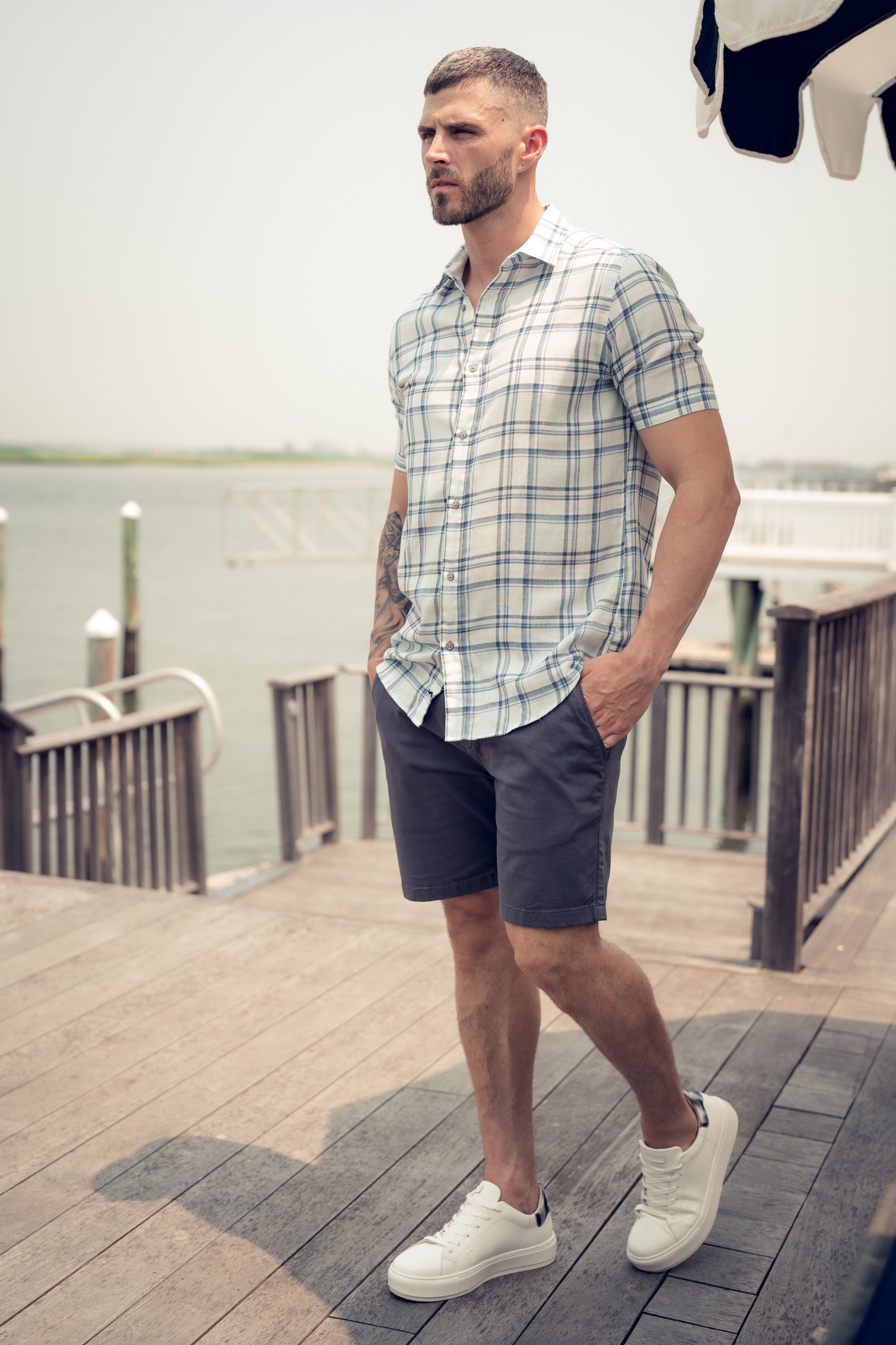 The Vintage Navy Shorts offer a classic American Heritage style crafted with comfort fit in mind. Featuring multi-thread stitching in the inner waistband and organic cotton twill chino, these shorts provide a timeless look with superior comfort.