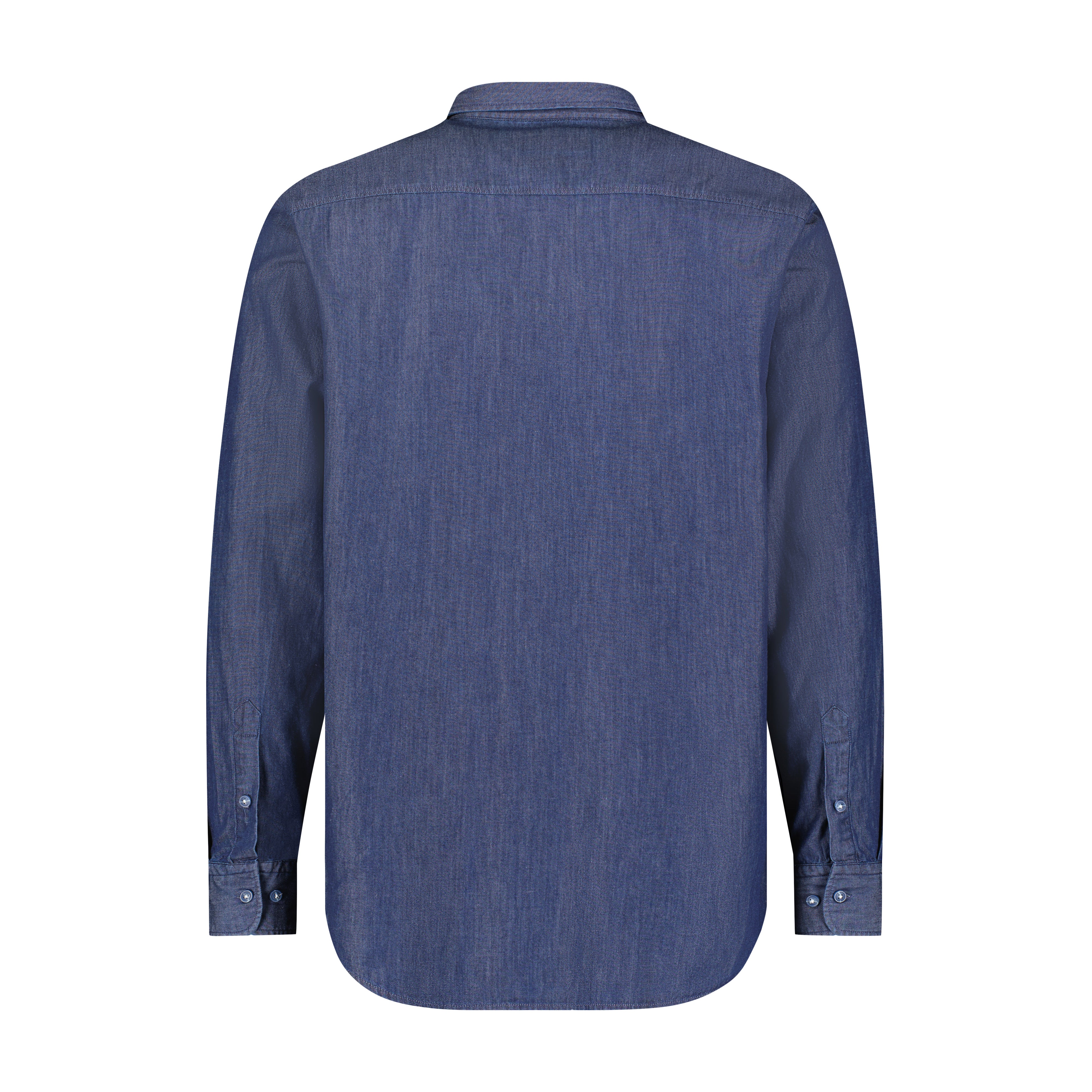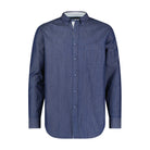 100% Cotton Tencel long sleeve single pocket woven shirt in sky blue with hidden button down & stripe tapering detail.