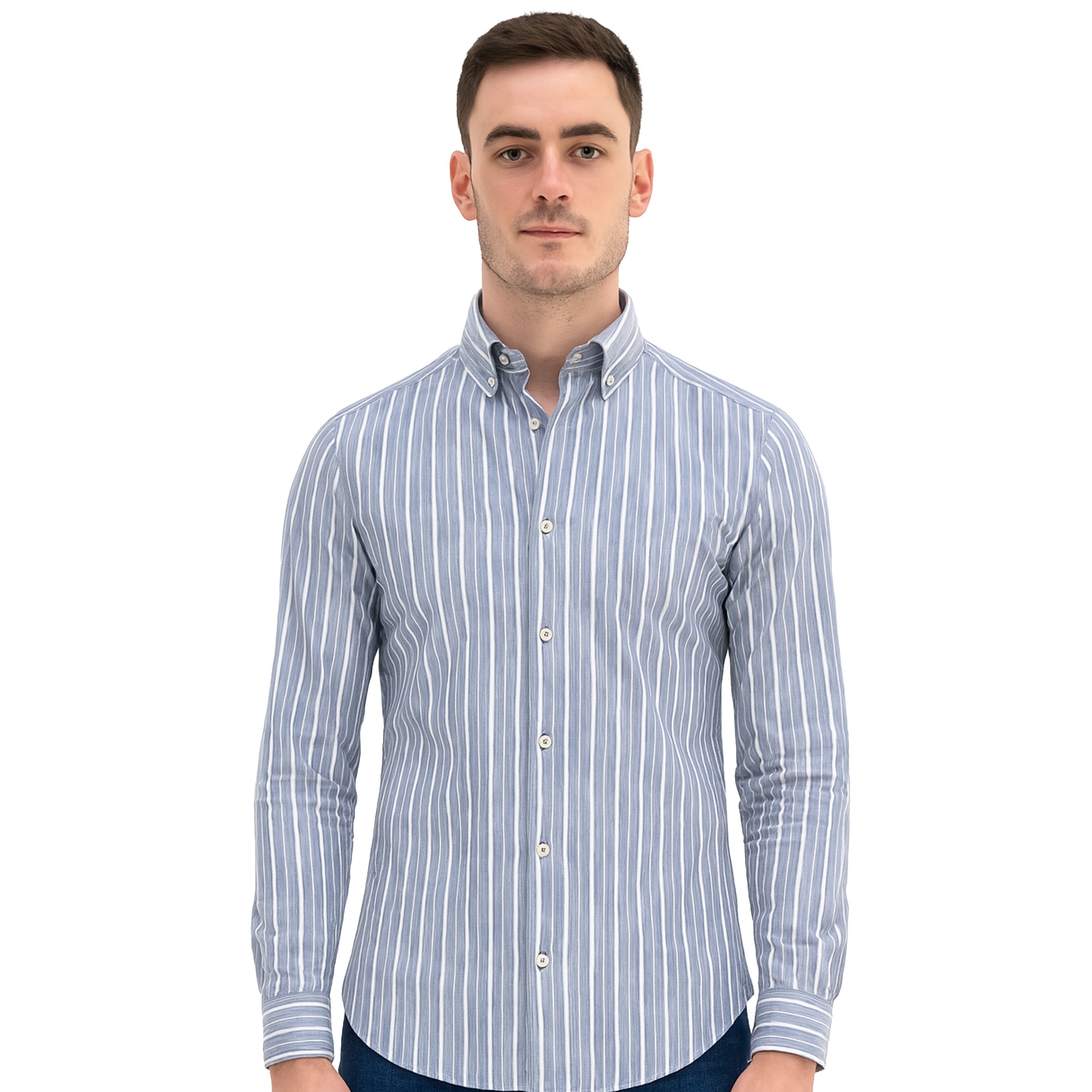 MELANGE BLUE WHITE NAVY STRIPE SHORT SLEEVE SHIRT